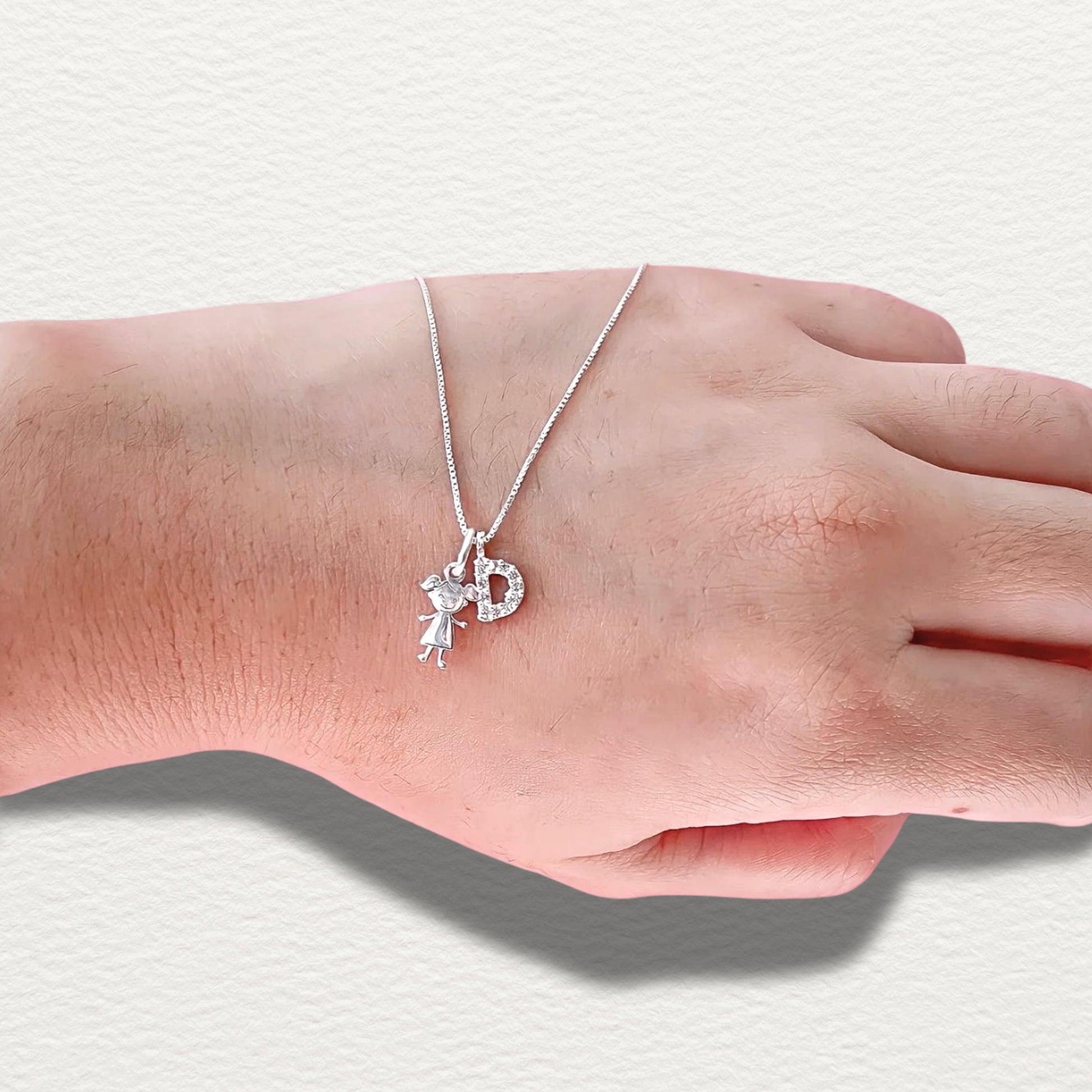 Cadena con dije de niña o niño e inicial con zirconia mini.